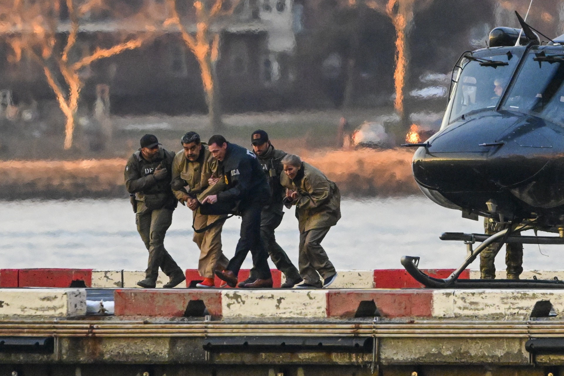 Una fotografía muestra al capturado presidente de Venezuela, Nicolás Maduro, vistiendo uniforme naranja de preso con la cabeza rapada y sin bigote.